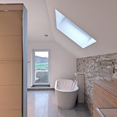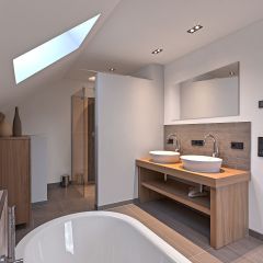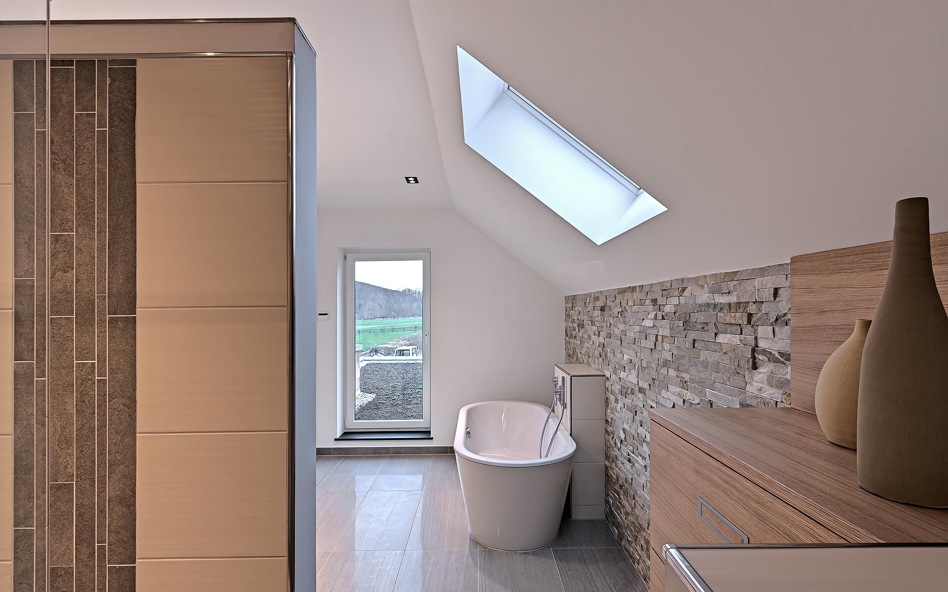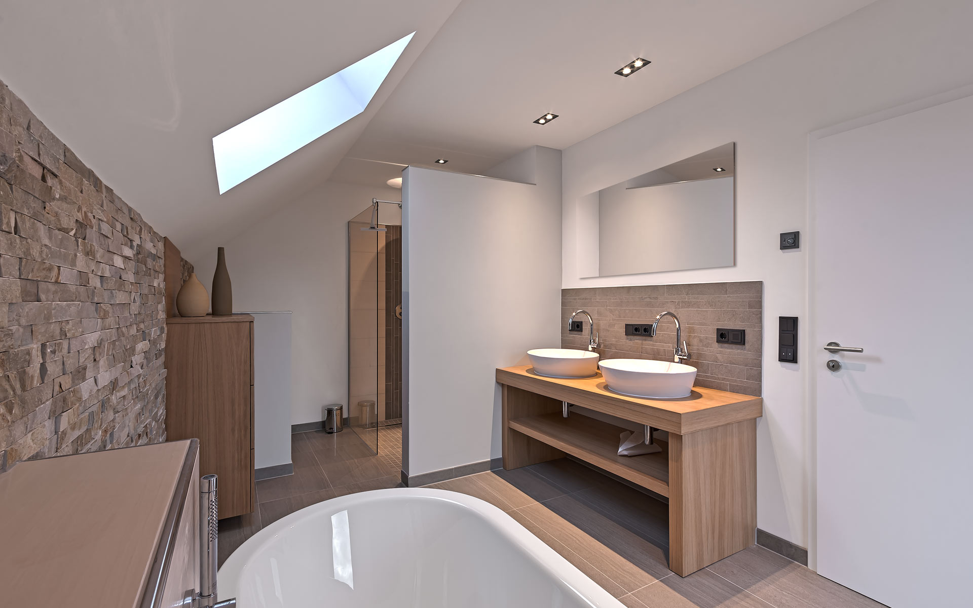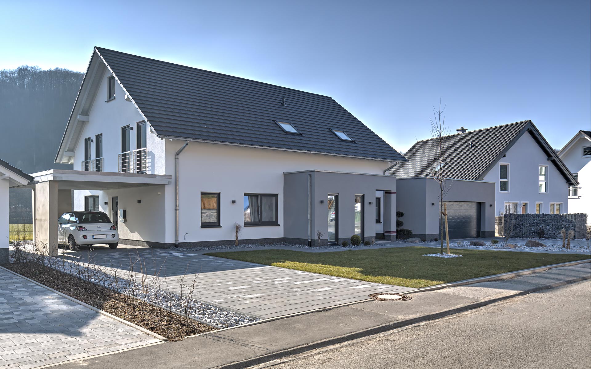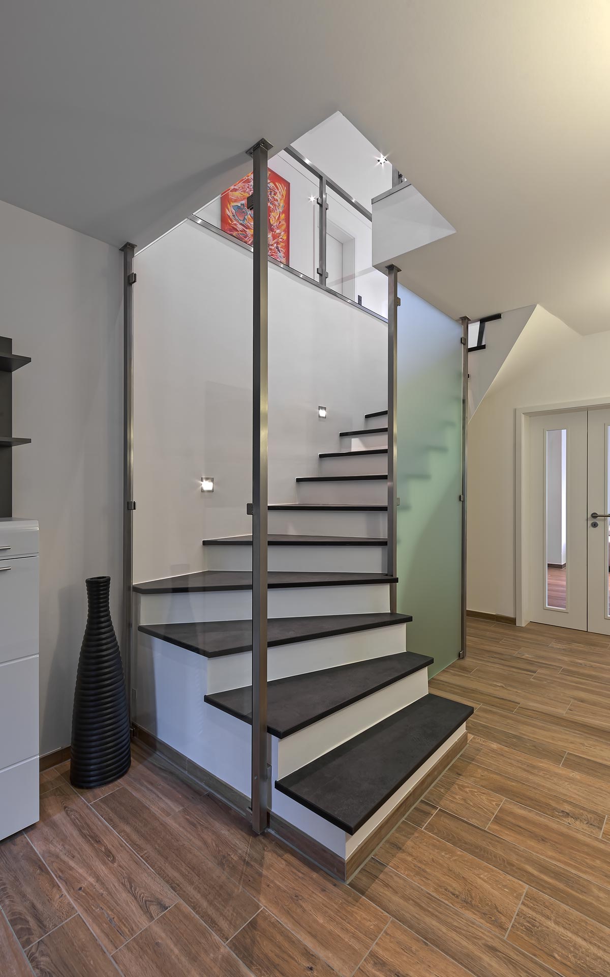 Aufgabenstellung der Bauherrschaft war, ein lichtdurchflutetes, offenes Wohnkonzept über 2 Etagen zu schaffen, welches eine moderne und klare Außensprache spricht. Mittels Kuben, die an die klare Struktur des Gebäudekörpers angepasst worden sind, öffnen sich alle Wohn- und Lebensbereiche in Richtung Süd und West.